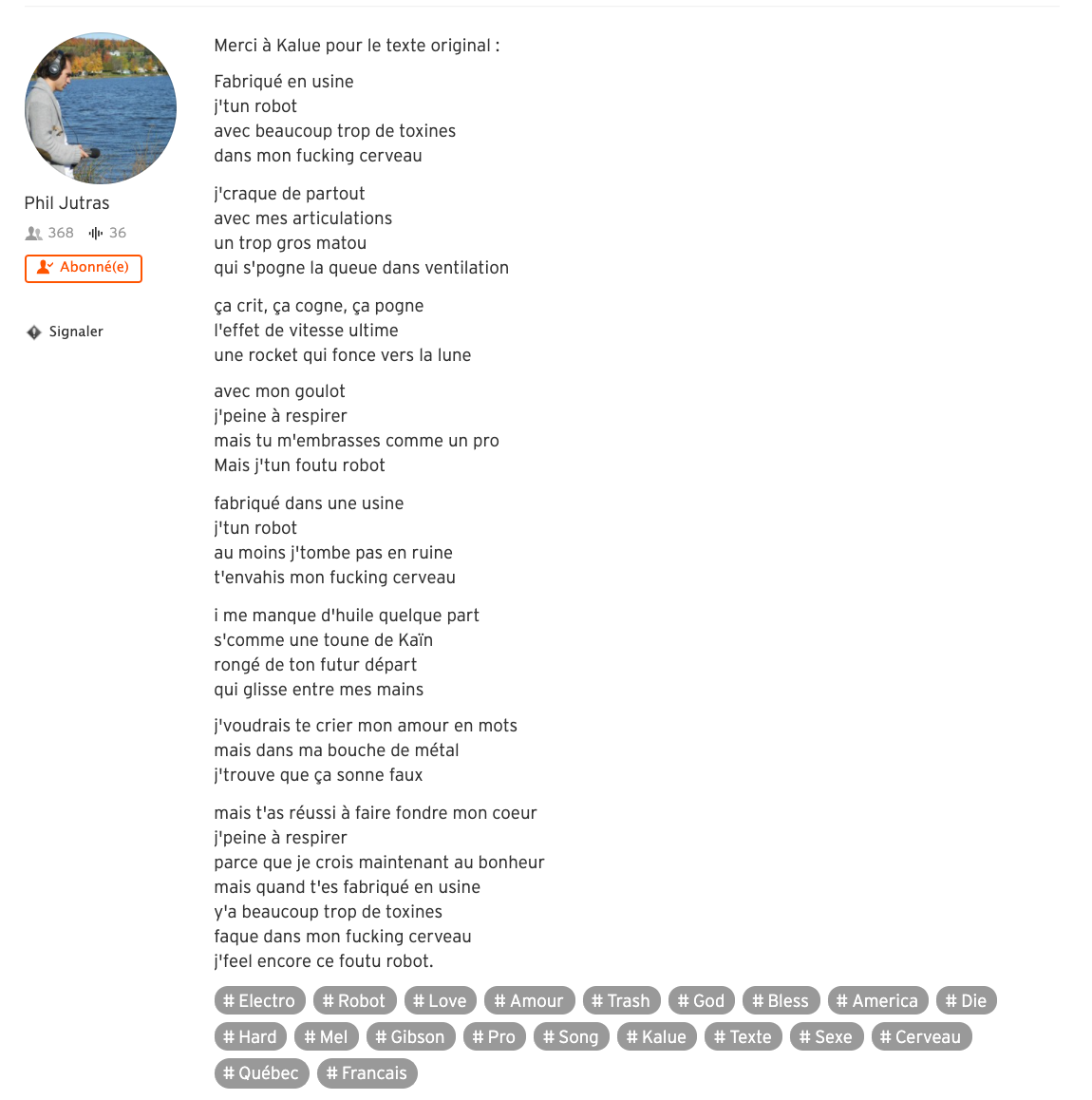 Il y a toujours de la musique dans ma tête et des paroles qui me viennent comme ça.